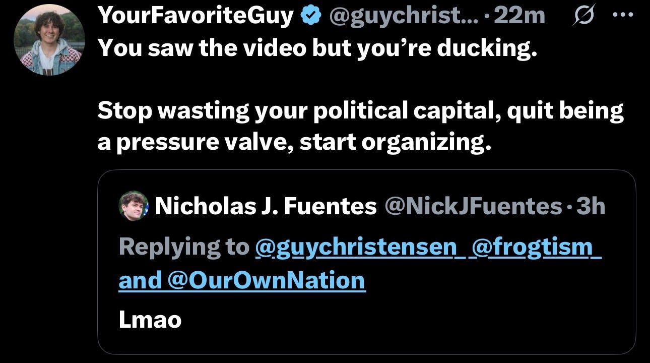 Nick Fuentes has never organized his audience to stop Israel.
