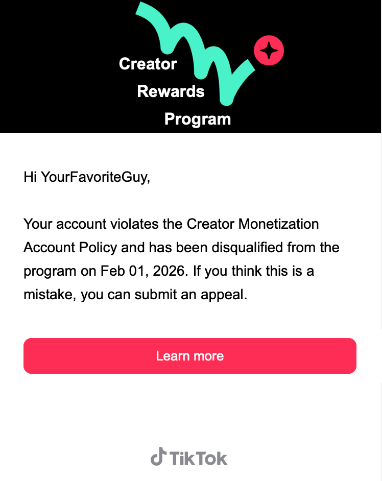 Beginning of the week: TikTok demonetized me overnight.